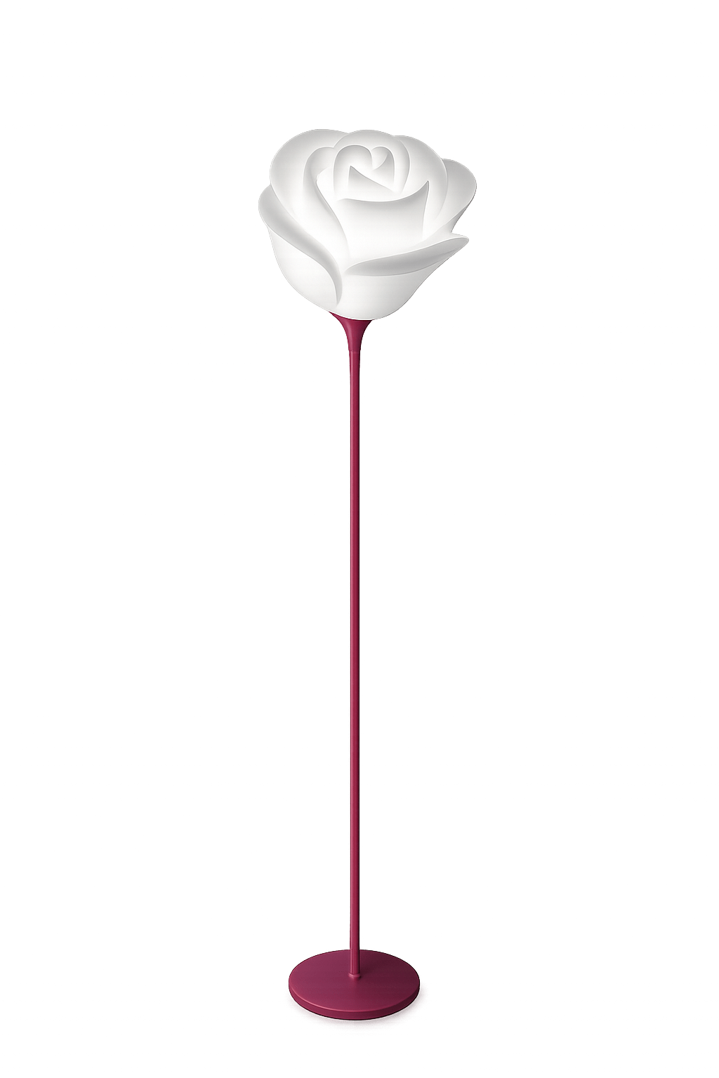 Está formada por un pie alto de 155 cm en metal pintado disponible en los colores blanco, negro, rojo, lila o amarillo. La luz es en color transparente.