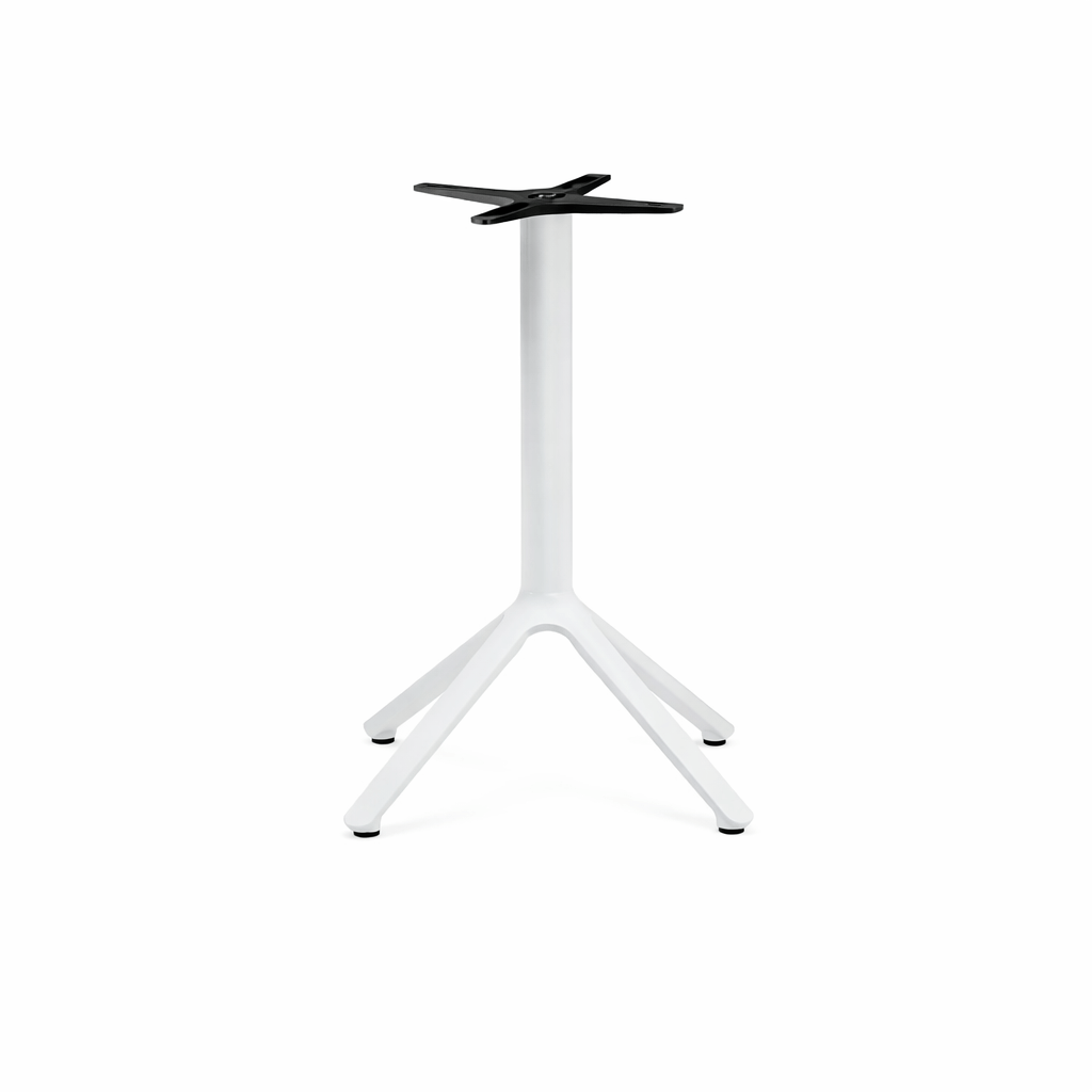 Pie de mesa fijo modelo Mar, fabricado en aluminio pintado blanco con base a cuatro patas y columna en forma de tubo redondeada .