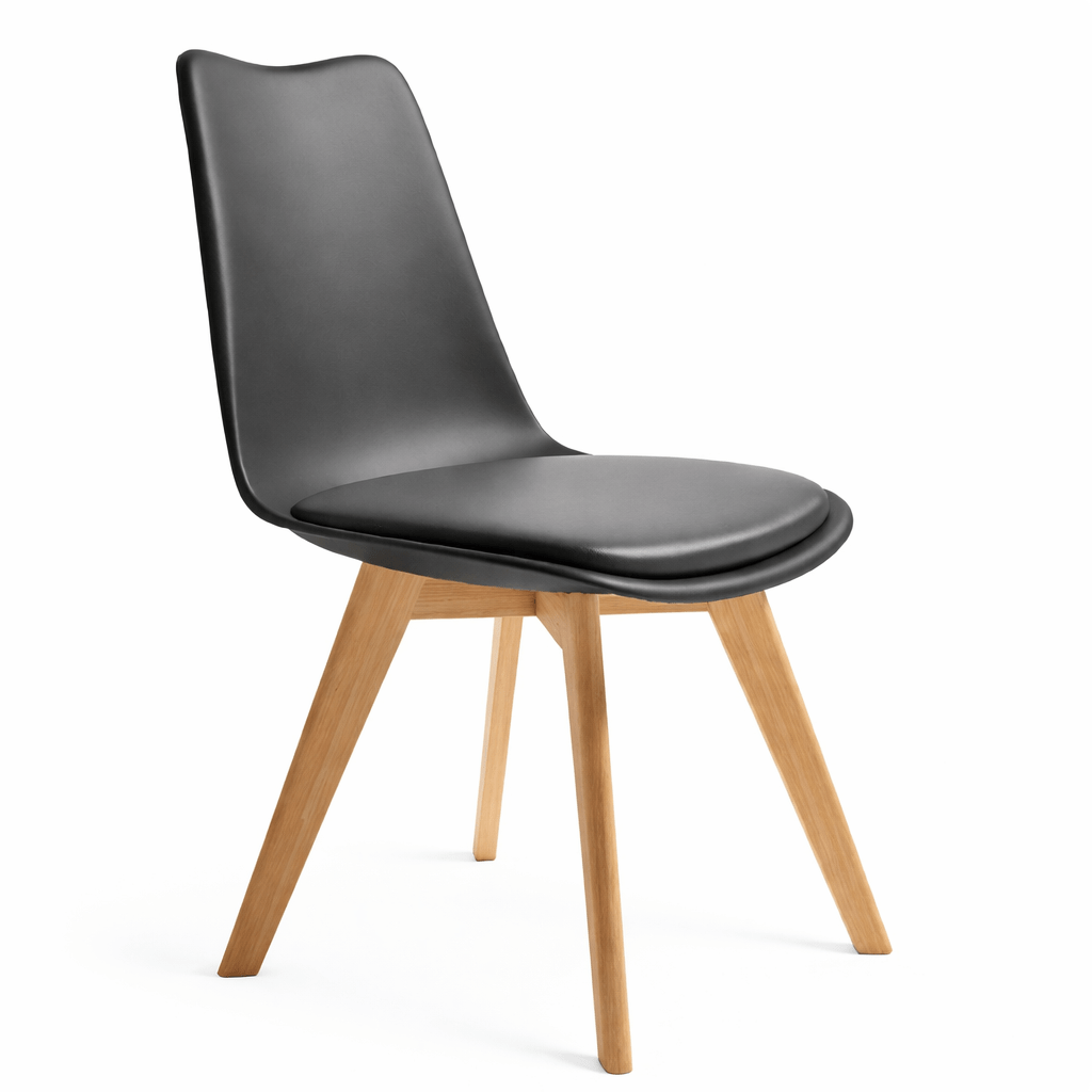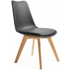 Fabricada con polipropileno , asiento tapizado en polipiel y patas en madera maciza de haya.