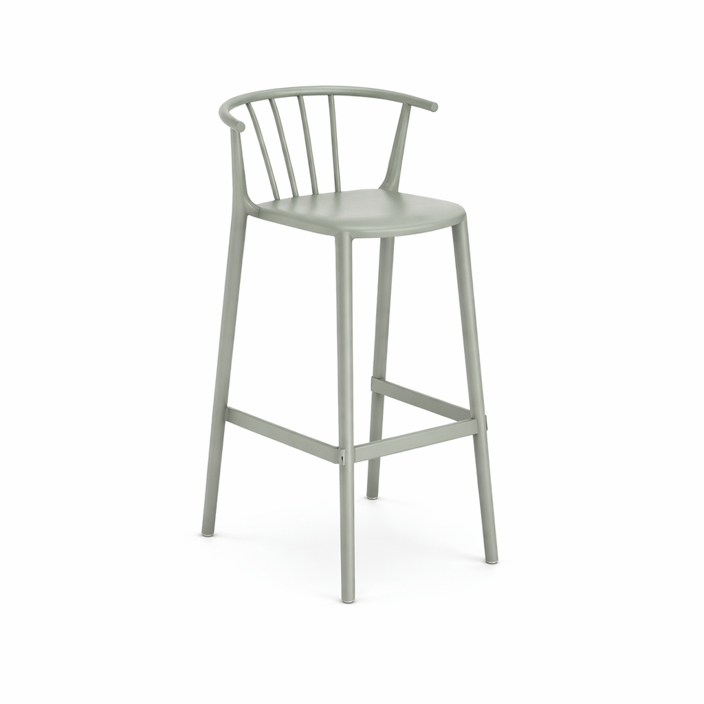 Taburete alto Woody de Resol, fabricado con estructura inyectada en fibra de vidrio.