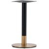 El pie de mesa está fabricado en hierro pintado negro con base redonda dorada y tubo redondo.