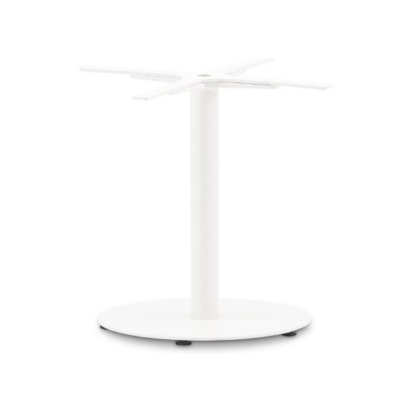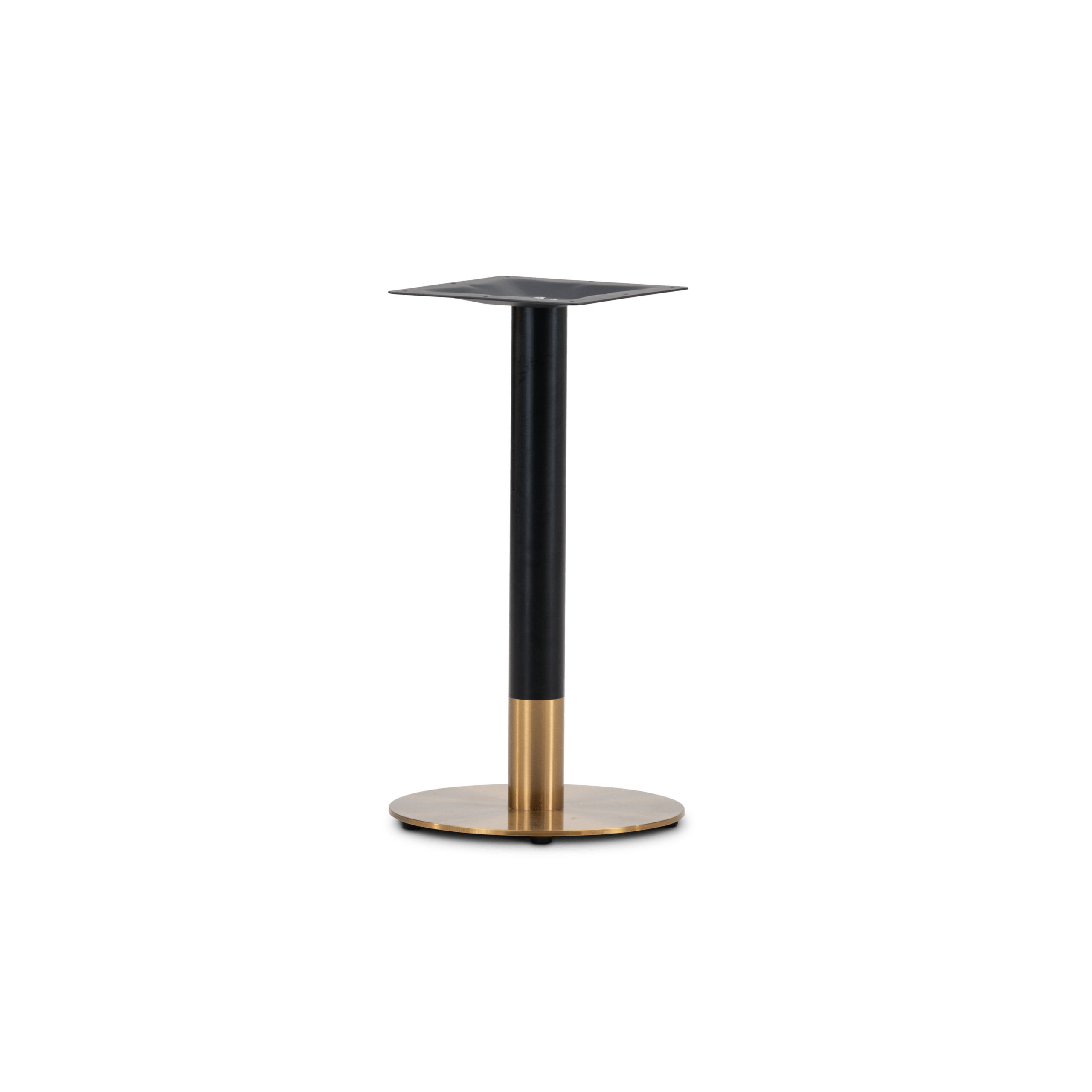 Pie de mesa en hierro pintado negro con base redonda dorada.