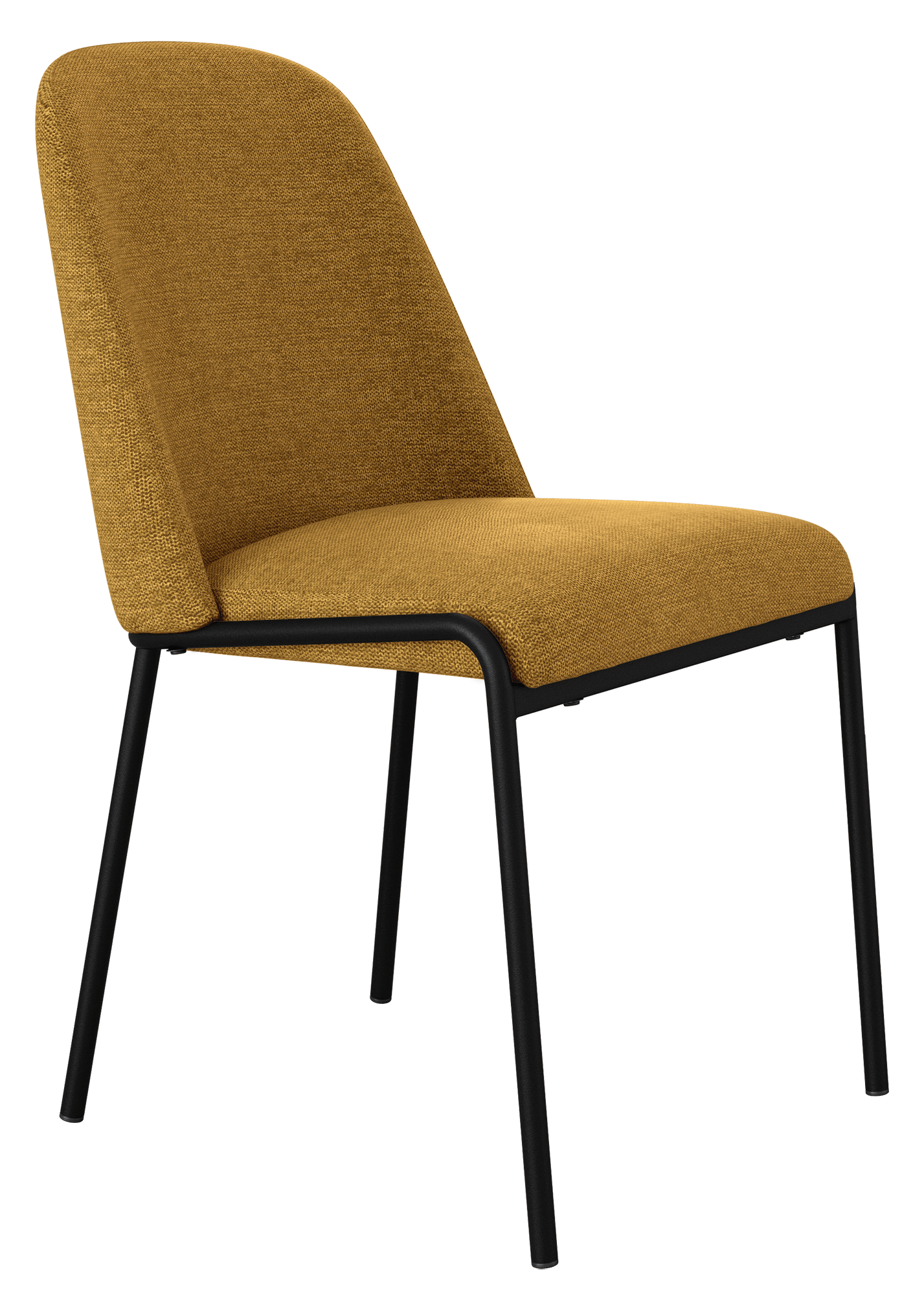 Fabricada con asiento y respaldo tapizados y patas en metal negro.