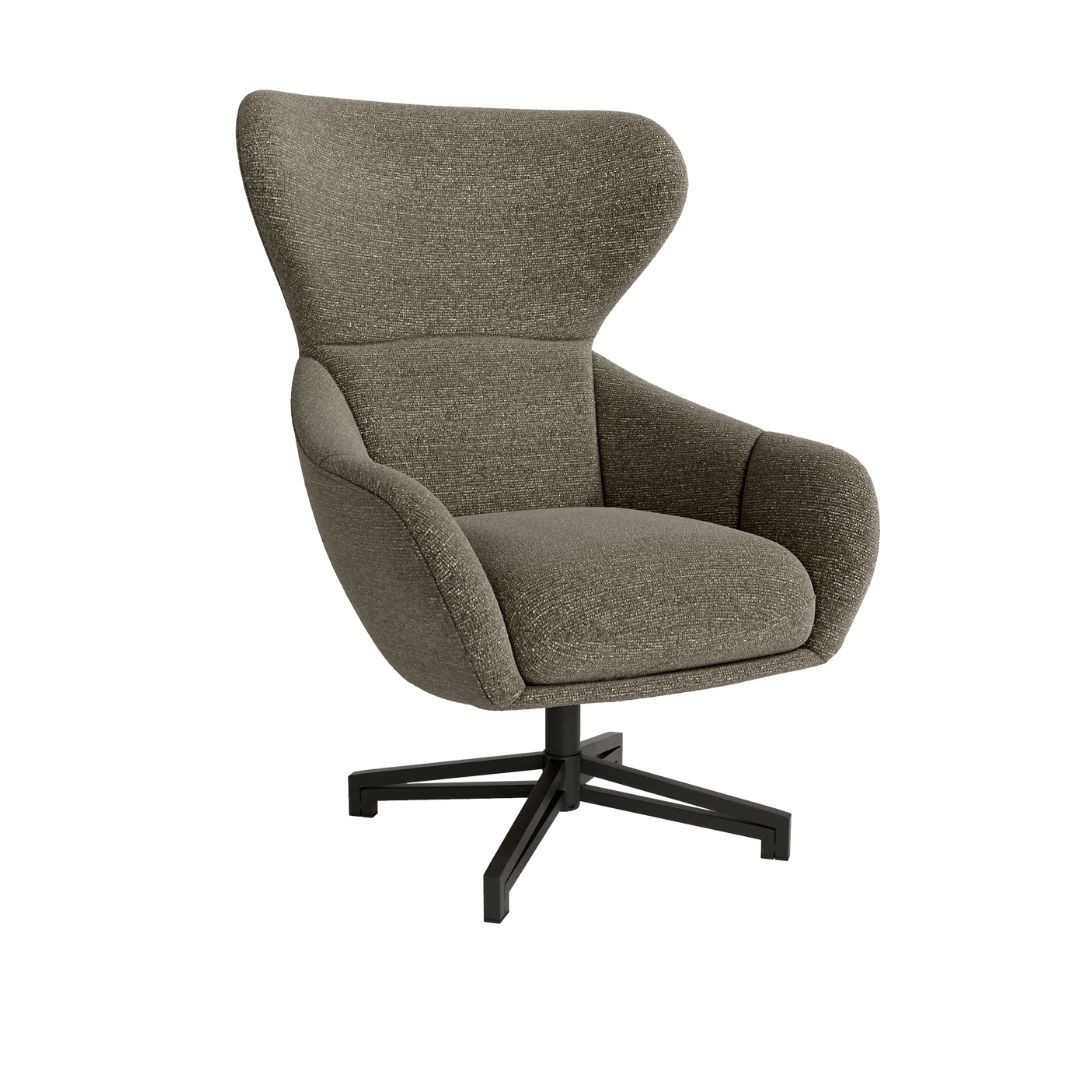 Butaca Abelia tapizada y giratoria 360º, con pata metálica negra.