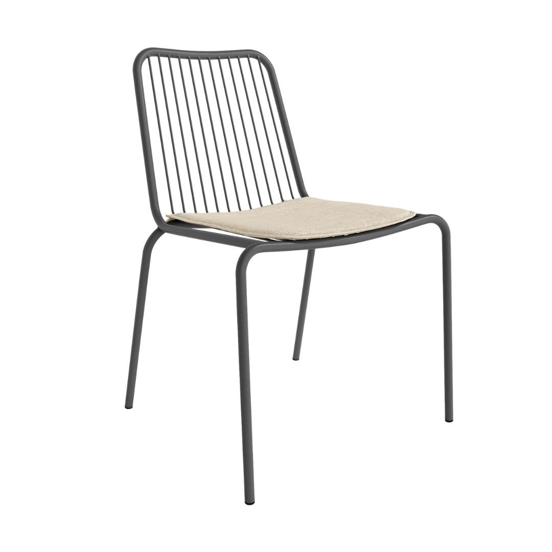 Silla Aloha 2 en color grafito, con estructura metálica y cojín.