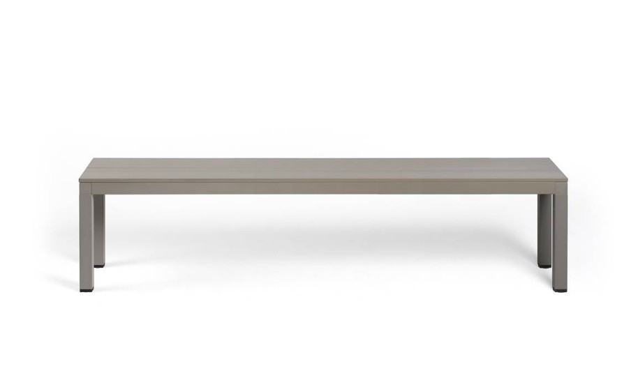 El banco Rio de Nardi está fabricado en aluminio pintado en color.