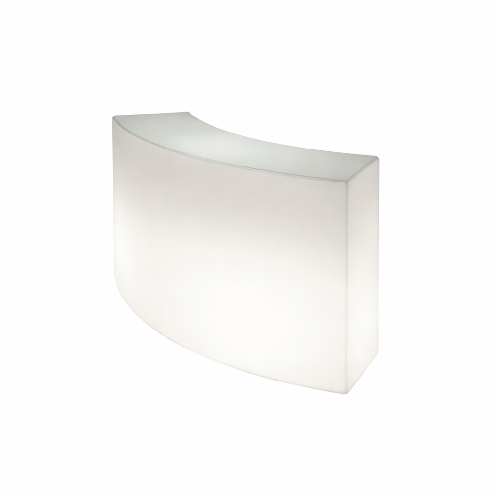 Esta barra de bar luminosa y modular, con su sencillez y la altura de su tablero la hacen perfecta para servicios de restauración. Se pueden combinar en múltiples módulos para crear largas superficies.