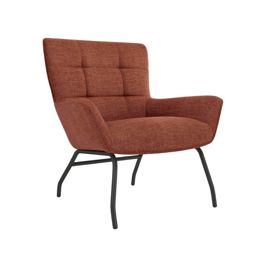 Butaca Dalia con respaldo y asiento tapizado, pata metálica negra.
