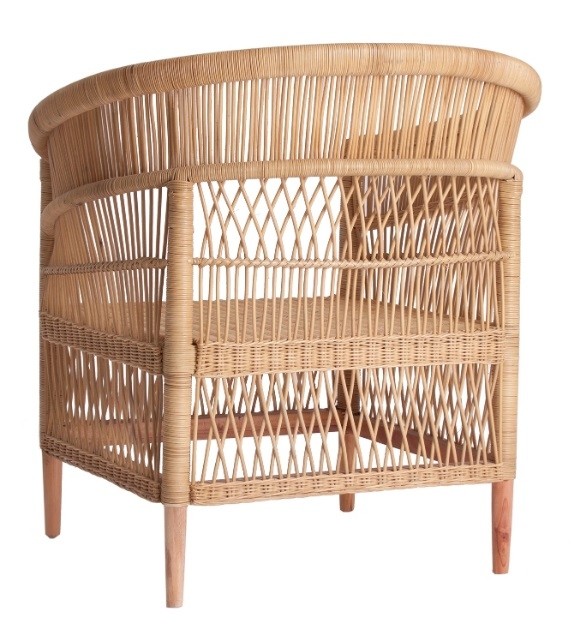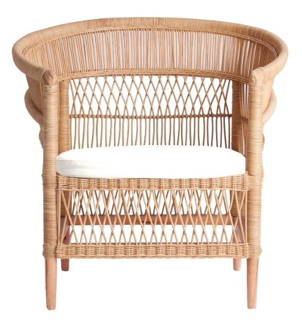 Butaca en ratán natural y cojín incluido en el precio de 5 cm de grueso loneta algodón blanco