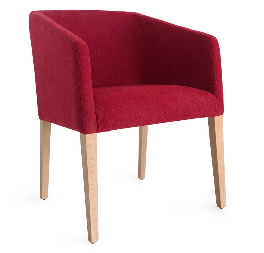 Colores: Madera color natural y tapizado rojo. Para más colores contactar con equipo de ventas.