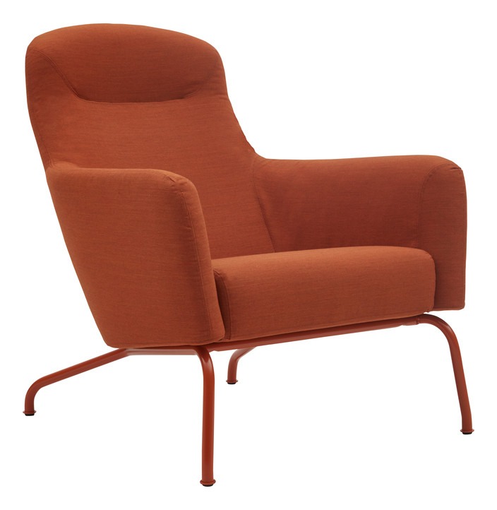 Butaca Havana con patas metálicas pintadas y tapizado. Apta para interior.