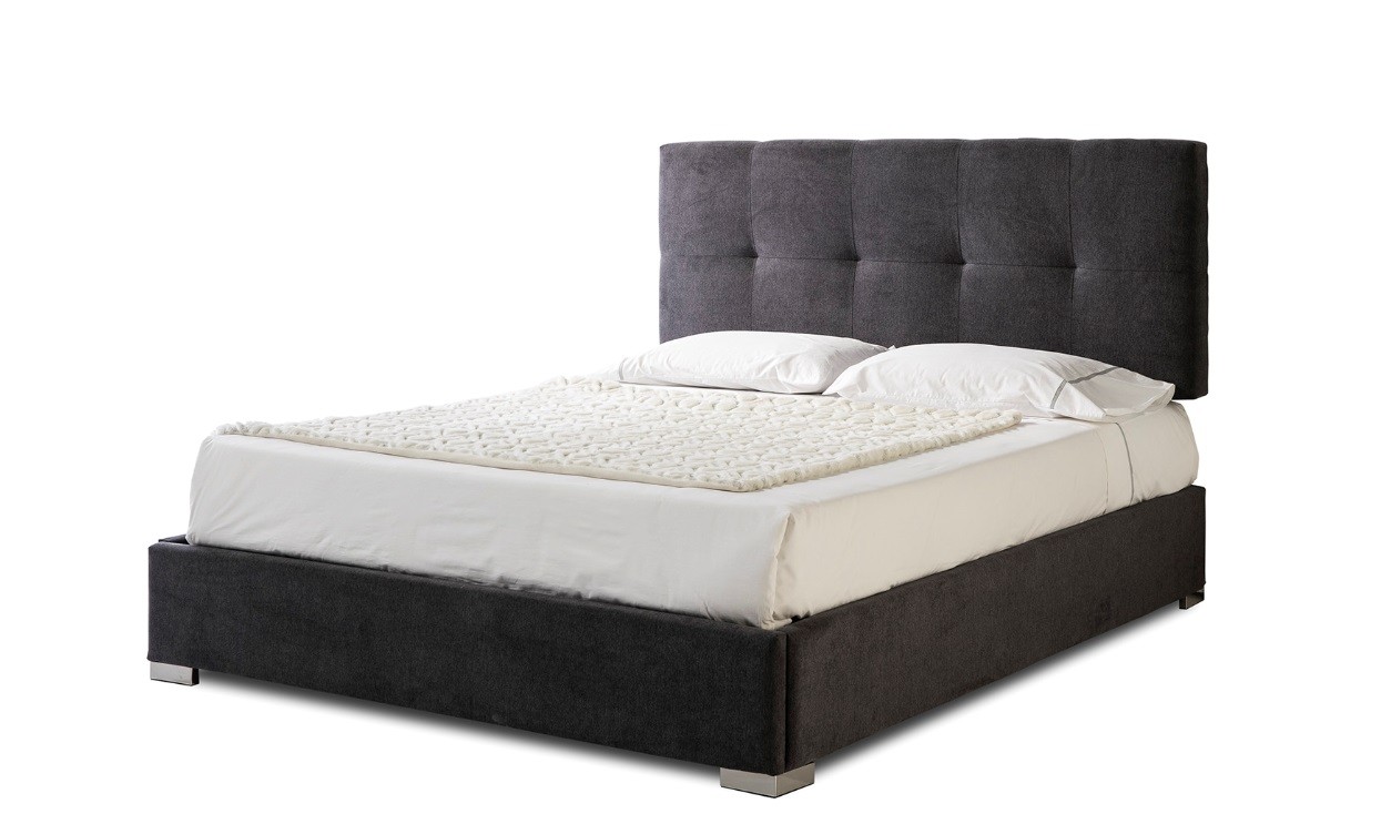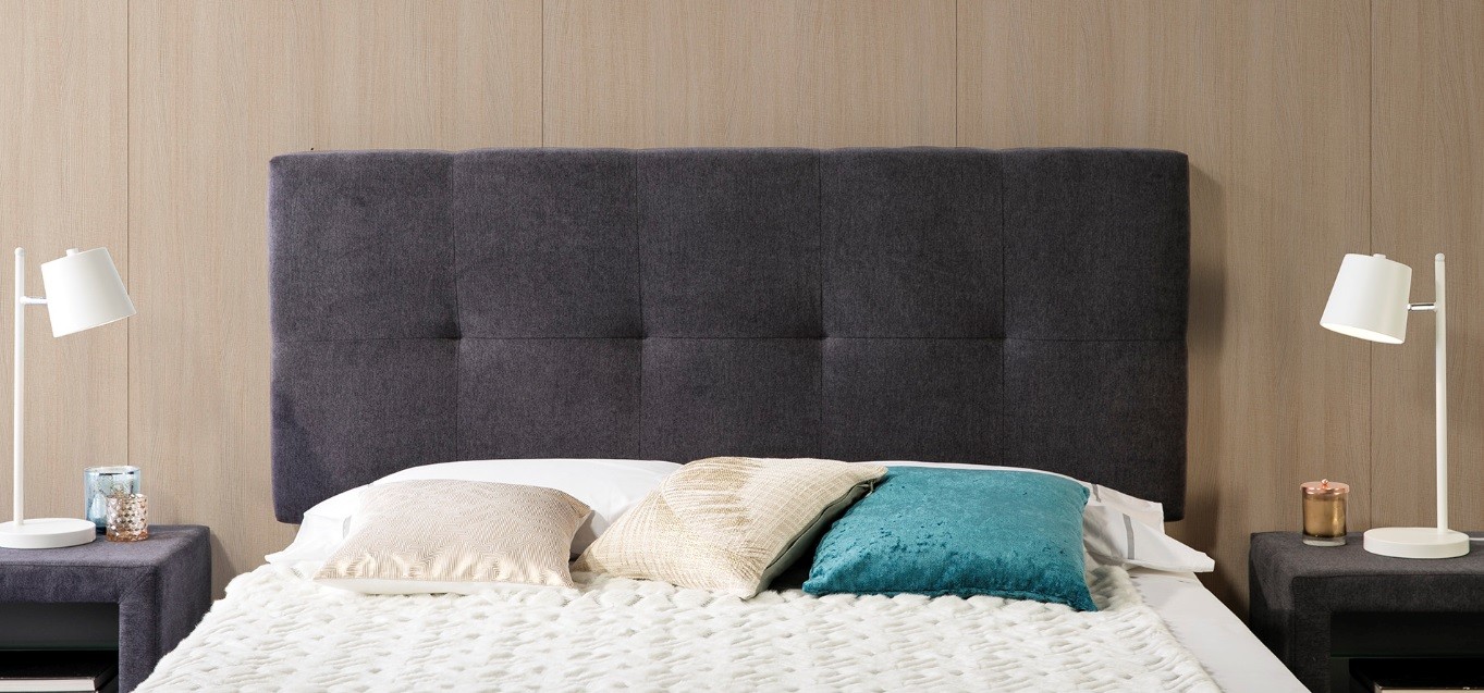 Cabecero tapizado en capitoné en tejido gris para colchón de 150 cm.