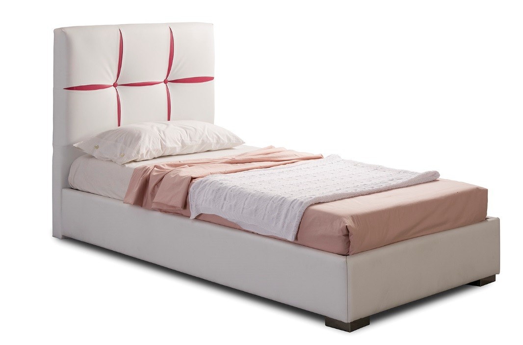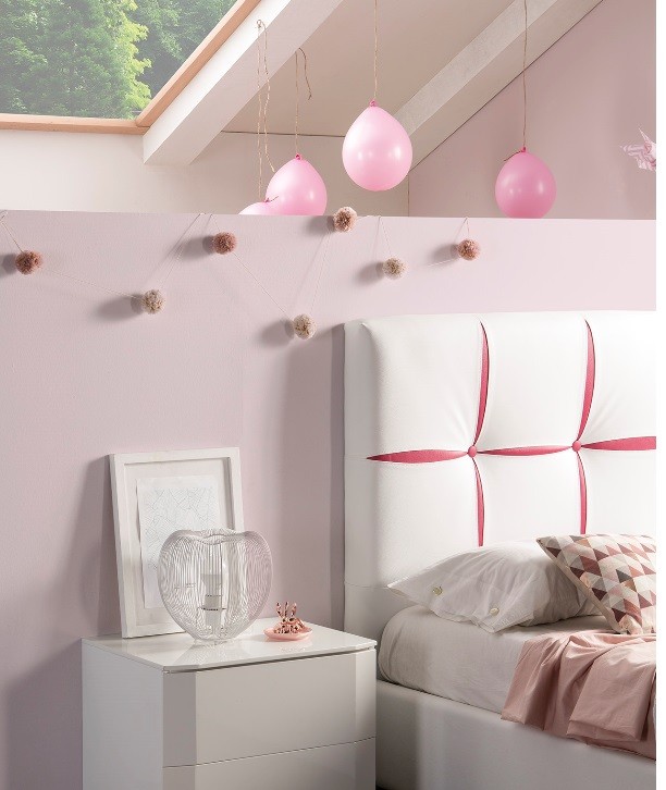 Cabecero tapizado blanco y rosa para cama de 90 cm.
