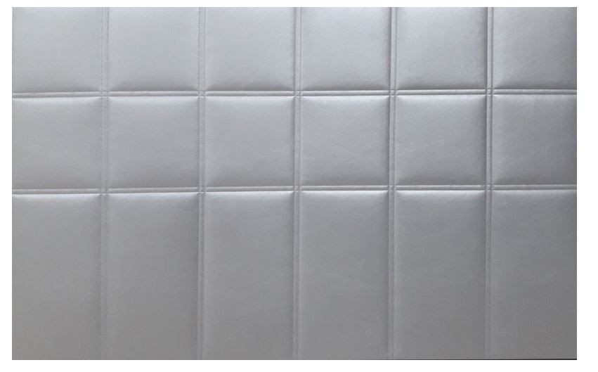Estructura rígida de madera y acolchado con espuma de densidad 20 Kg/m3. Incluye herrajes para fijar en la pared.