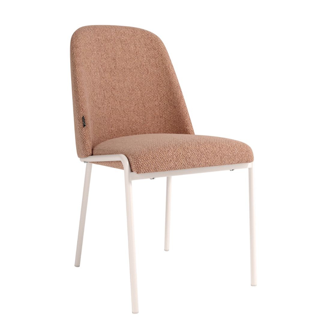 Silla Calgary en color Salmón, con asiento y respaldo tapizado y patas metálicas.