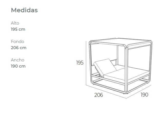 La cama balinesa Ibiza está fabricada con estructura de aluminio lacado y tornillería de acero inoxidable lacada.