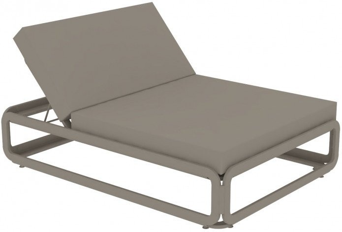 Cama balinesa Nana de Ezpeleta fabricada en aluminio pintado en taupe y tejido náutico en color taupe.