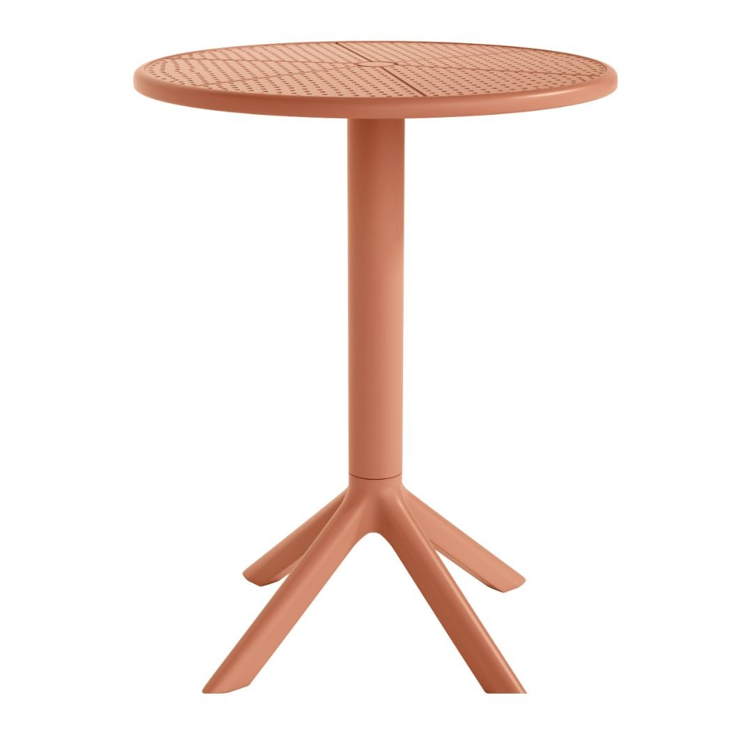 La mesa Cocoa con estructura y sobre en polipropileno, es una opción perfecta para cualquier tipo de terraza siendo un elemento sencillo y funcional.
