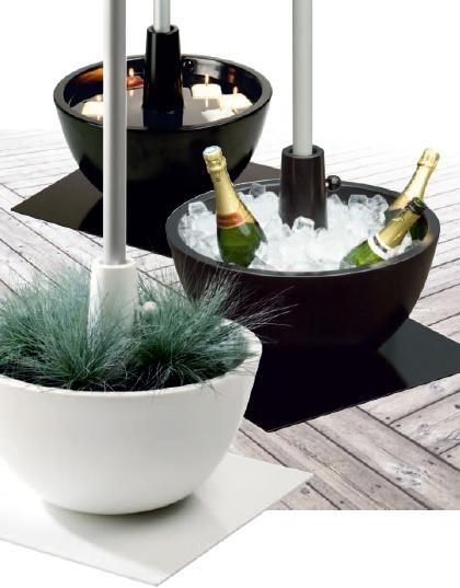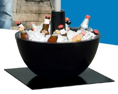 Base y tubo de acero y bol de polietileno con un diámetro de 70 cm.
