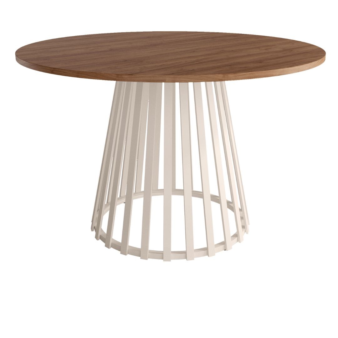 Mesa auxiliar con pata metálica marfil, sobre de 22 mm en acabado melaminas.