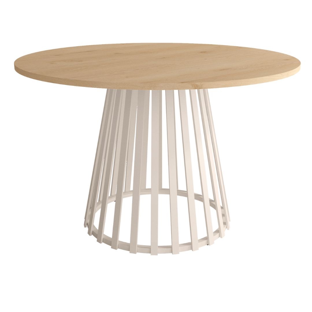 Mesa auxiliar con pata metálica marfil, sobre de 22mm acabado melamina.