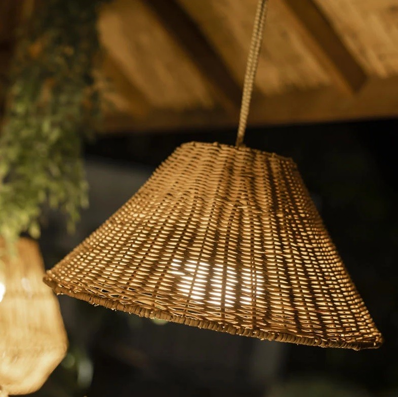 La lámpara modelo Calobra de New Garden , fabricada a mano con fibras naturales,es perfecta para espacios de interior y exterior.Úsala donde quieras ya que no lleva cable y se puede encender y apagar a distancia y regular su intensidad.