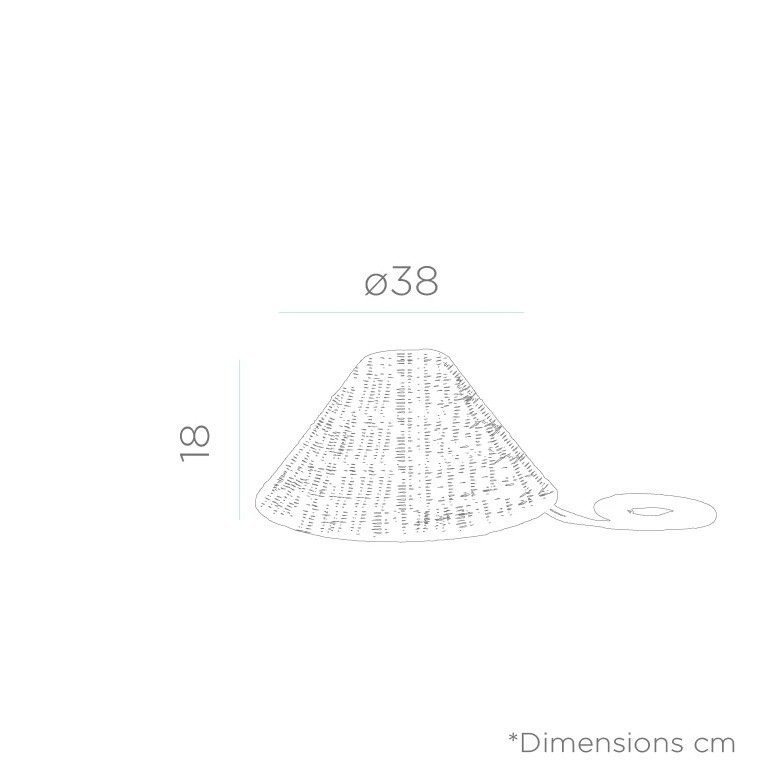 Fabricado en fibras naturales. Sin cables .Sin instalación. Apto para uso interior y exterior.Intensidad de la luz regulable.Encendido con mando a distancia.Incluye 3 mts de cuerda.