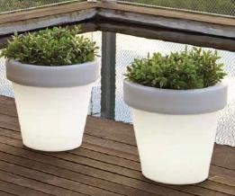 Siguiendo la linea de los maceteros tradicionales, el macetero Rosa, en versión iluminada, sin duda, es uno de los focos de atención durante la noche en terrazas de hoteles, campings y chillouts.