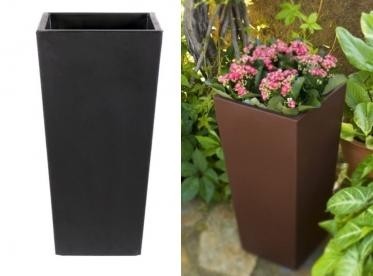 Macetero Tulipán, con un diseño de lineas rectas, y varios colores y acabados, es uno de los elementos decorativos que mejor encajan en en zonas de exterior en hoteles, chillouts y terrazas.