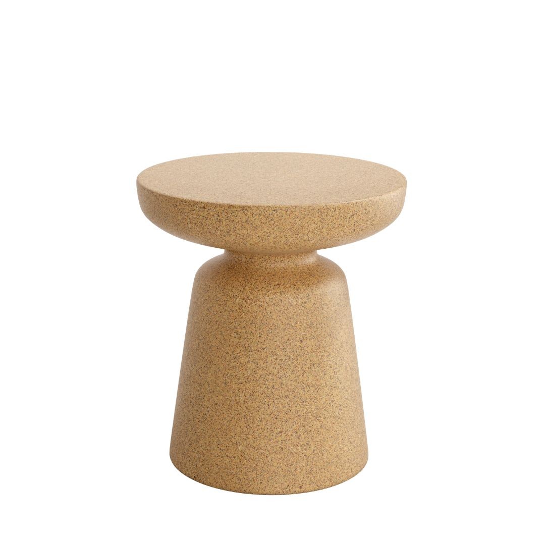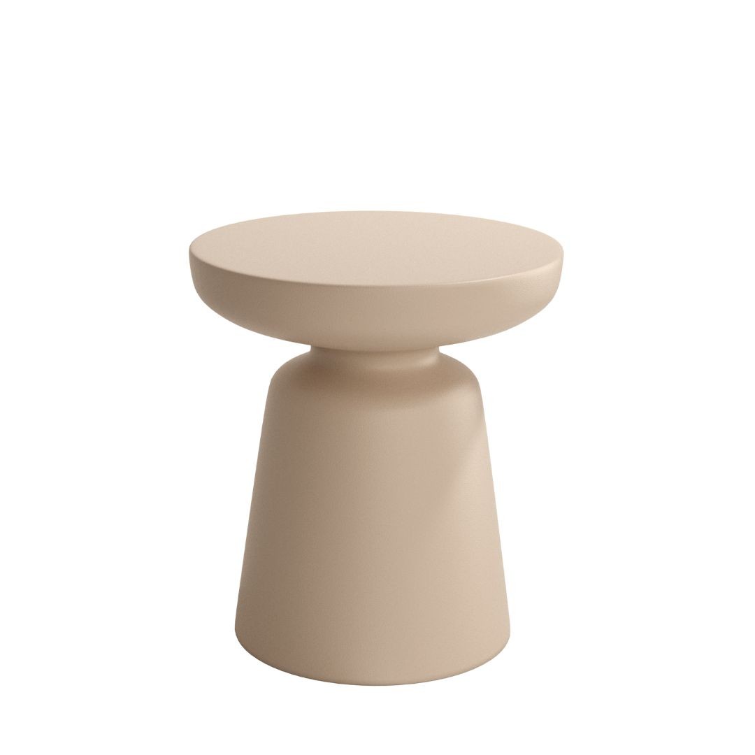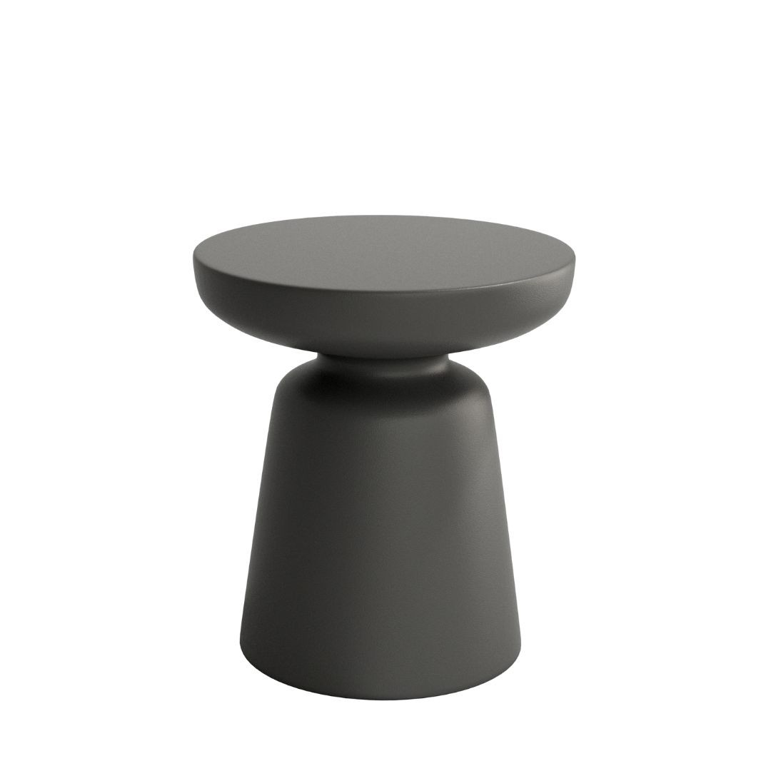 Mesa auxiliar Borneo, con acabados grafito y arena fabricado en polipropileno. Acabados magma y minas en polietileno.