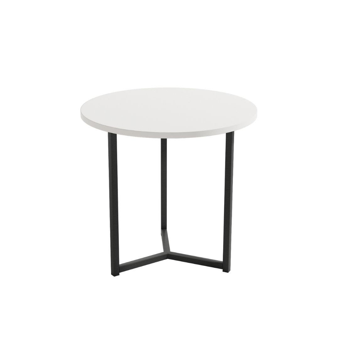 Mesa auxiliar Pacífico, con estructura metálica y sobre acabado melamina 15mm.