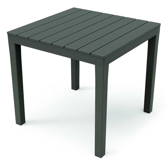 Bali es una mesa cuadrada de resina, un material ideal para uso en espacios en el exterior como terrazas o jardines.