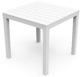 Bali es una mesa cuadrada de resina, un material ideal para uso en espacios en el exterior como terrazas o jardines.