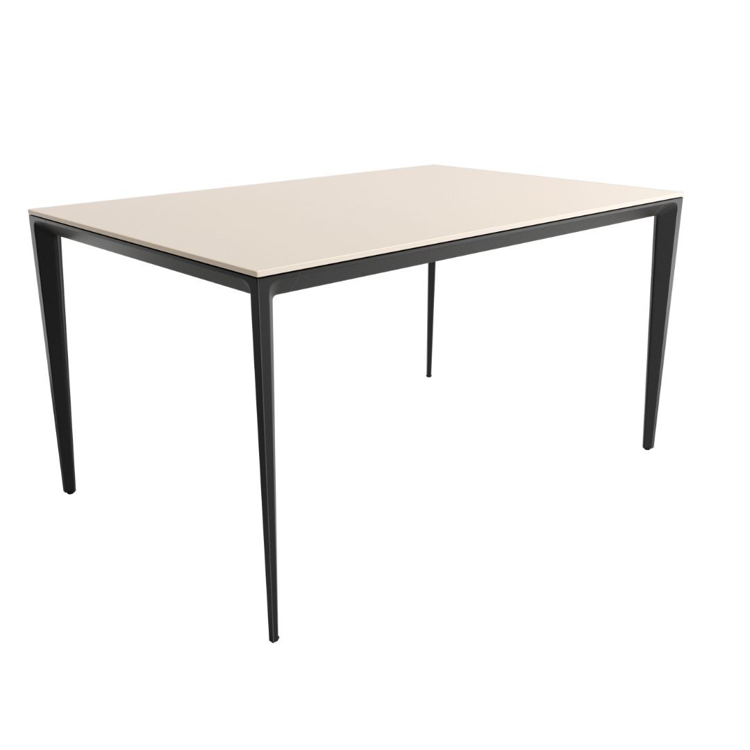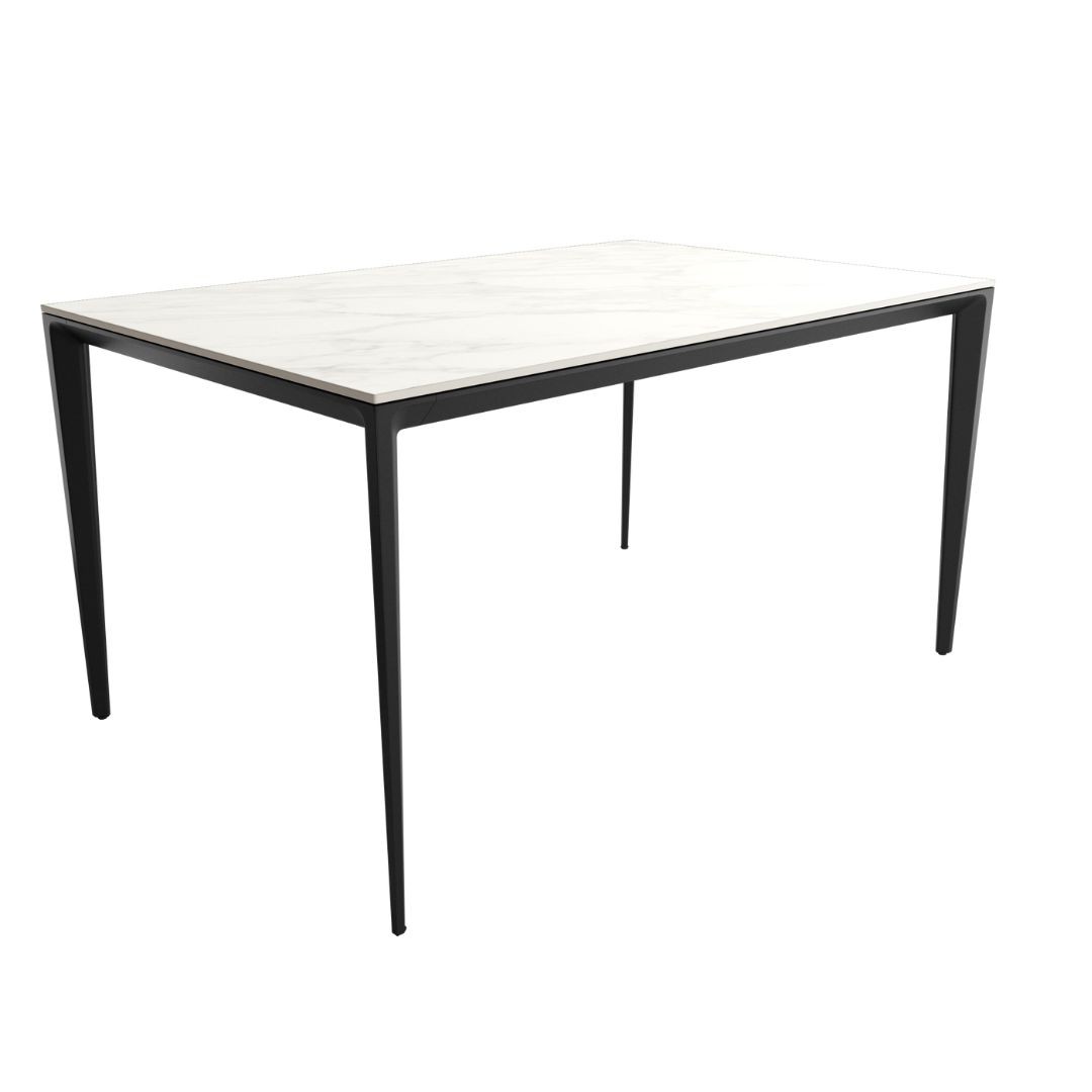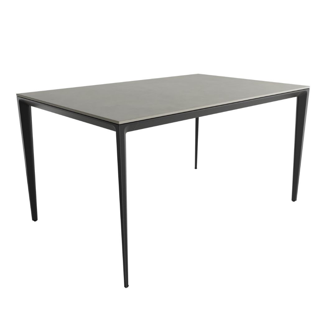 Mesa Cortés de comedor fija con estructura de aluminio y sobre porcelánico de 12 mm en acabado piedras.