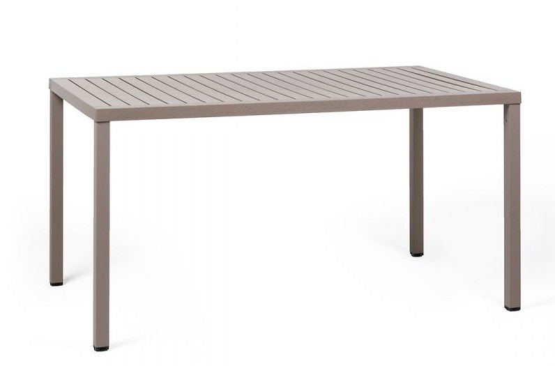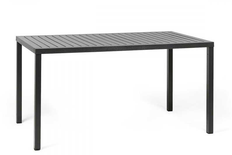La mesa Cube e Nardi es una mesa apilable 140×80 cm. con tablero DurelTOP y en polipropileno tratado anti UV y teñido en masa. Patas en aluminio pintado. Efecto mate. Tacos Regulables. Resina reciclable.