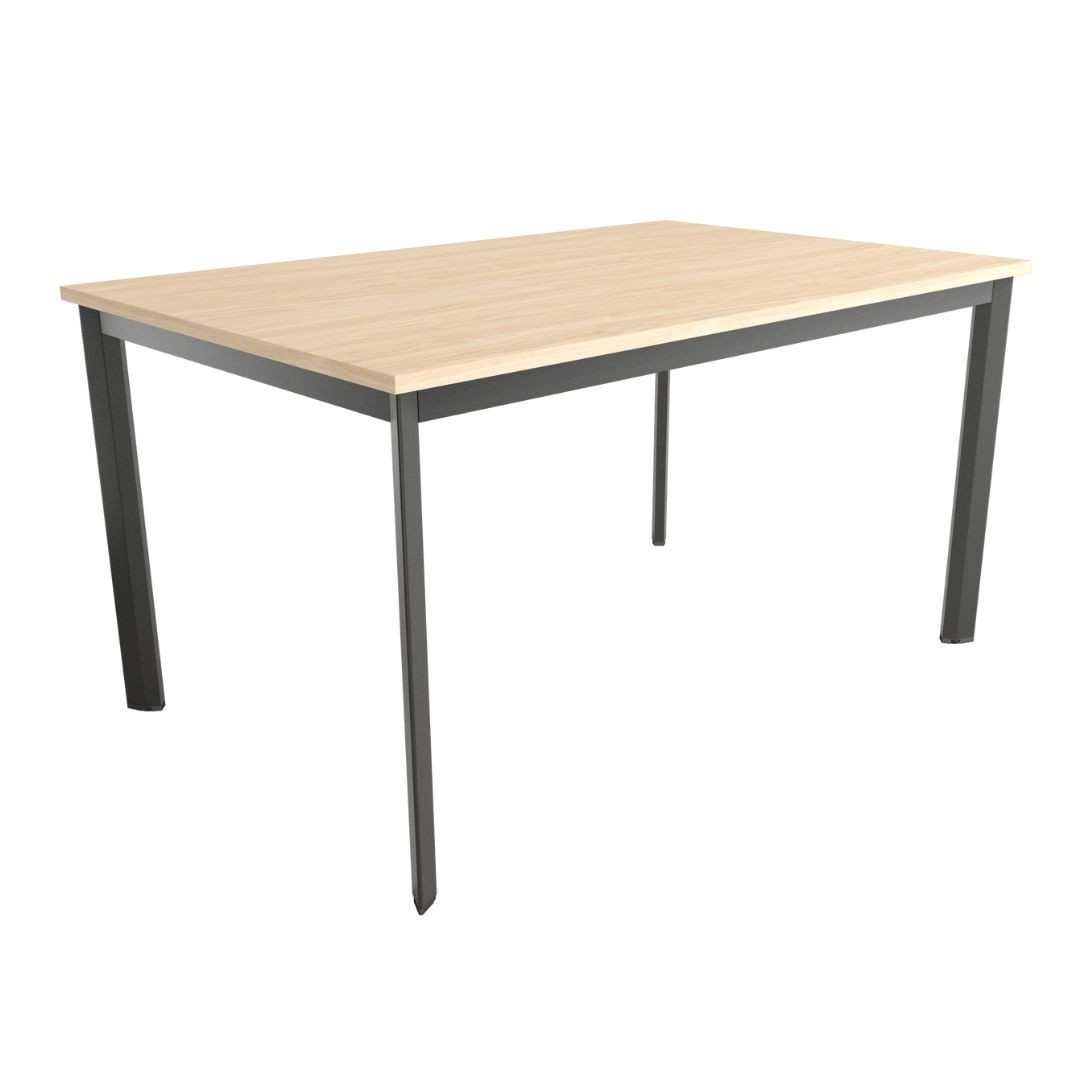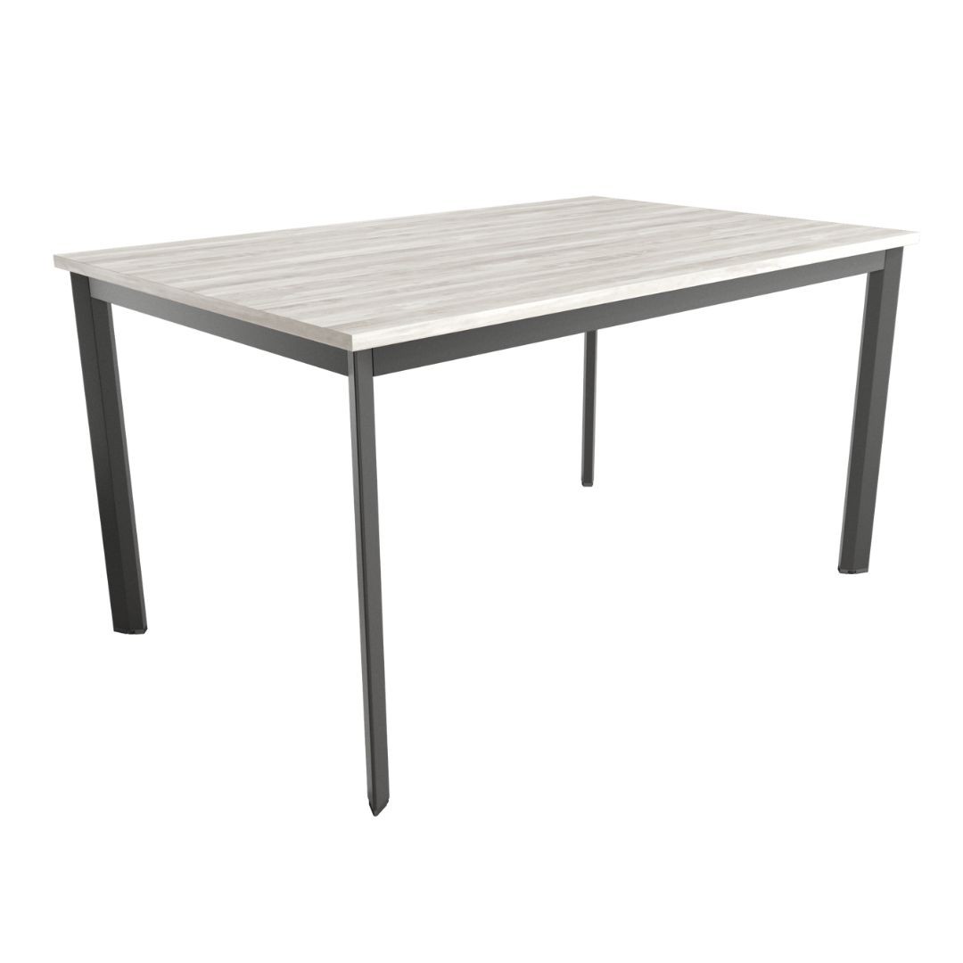 Mesa Garda de comedor fija con estructura metálica negra y sobre en acabado melamina de 22 mm.