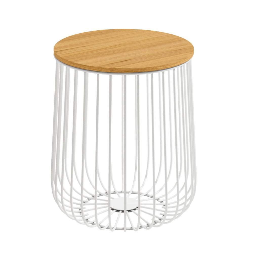 Fabricada con base metálica pintada en blanco y tablero de madera.