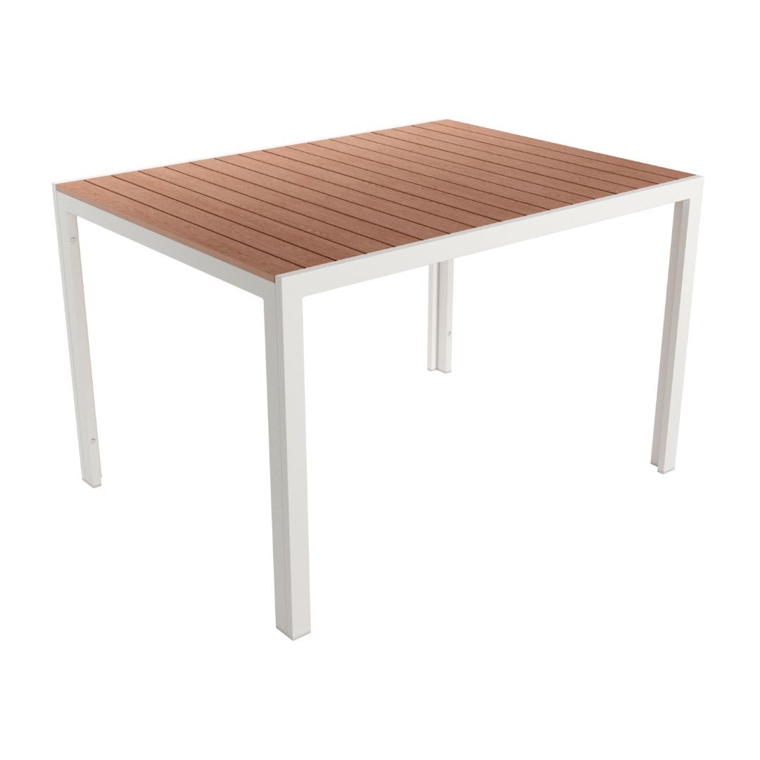 Mesa terraza Marea con estructura metálica y sobre de lamas de WPC efecto madera.