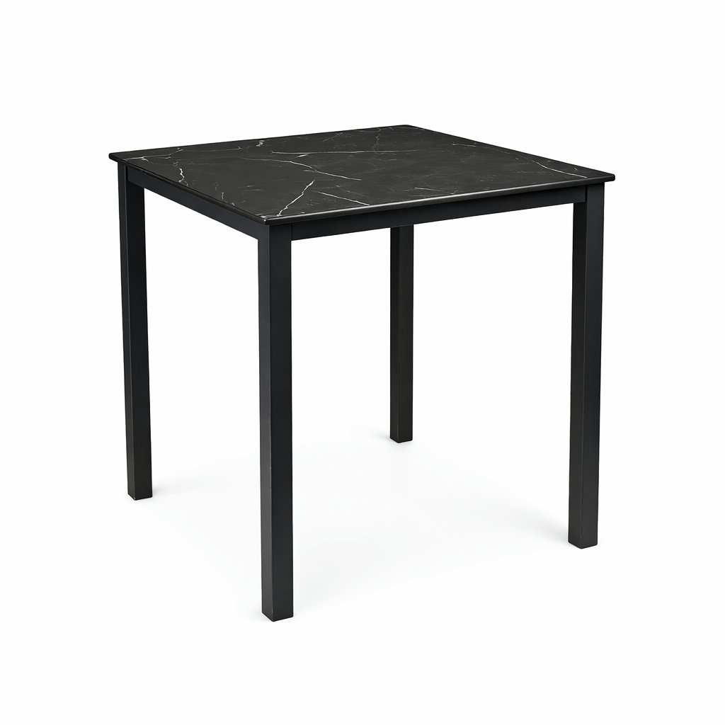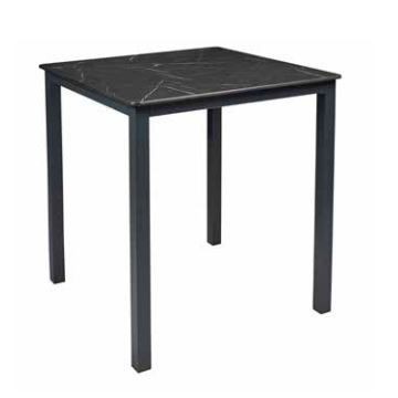 Mesa Monaco de Ezpeleta fabricada en aluminio pintado en antracita y tablero en compacto color marmol negro.