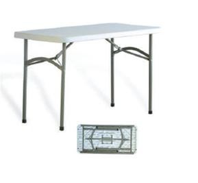 Mesa plegable para catering, fabricada en polímero y estructura en metal.