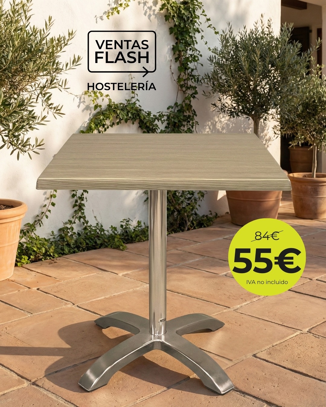Mesa con pie aluminio Werzalit de 70×70 cm para Horeca o contract.