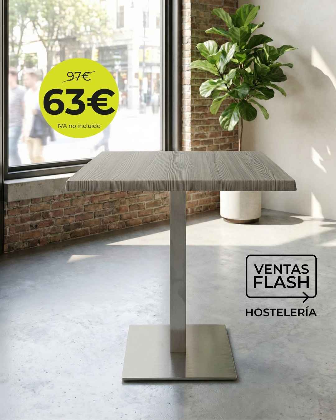 Mesa con pie inoxidable y tablero Werzalit oscuro de 70x70cm para Horeca o contract.