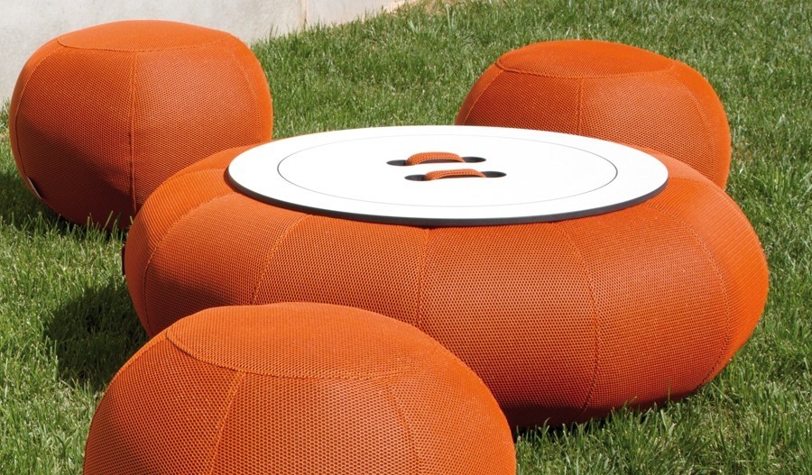 Mesa puff en forma de donut, en tejido 3D tridimensional, transpirable y drenable.