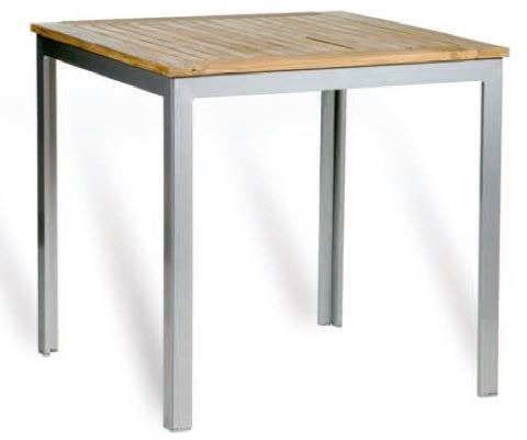 Mesa Teka fabricada en estructura de aluminio lacado y tablero en madera de teka.