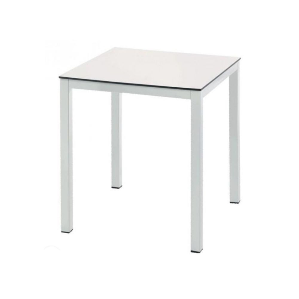 La mesa Yame está fabricada en estructura en aluminio y tablero en compacto en color blanco, ideal para bodas y banquetes.