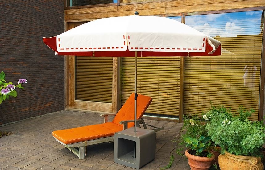 Parasol modelo Chambas con unas medidas de 160 x 160cm, estructura en acero inoxidable y cubierta de poliéster, muy adecuado para exteriores como terrazas, restauración, cafeterías. Está diseñado con una raya fina cortada con láser en el borde del parasol. Diseño muy actual, creativo, vistoso y moderno de fácil limpieza. Diseñado con un mecanismo push-up. Para uso contract y hostelería.