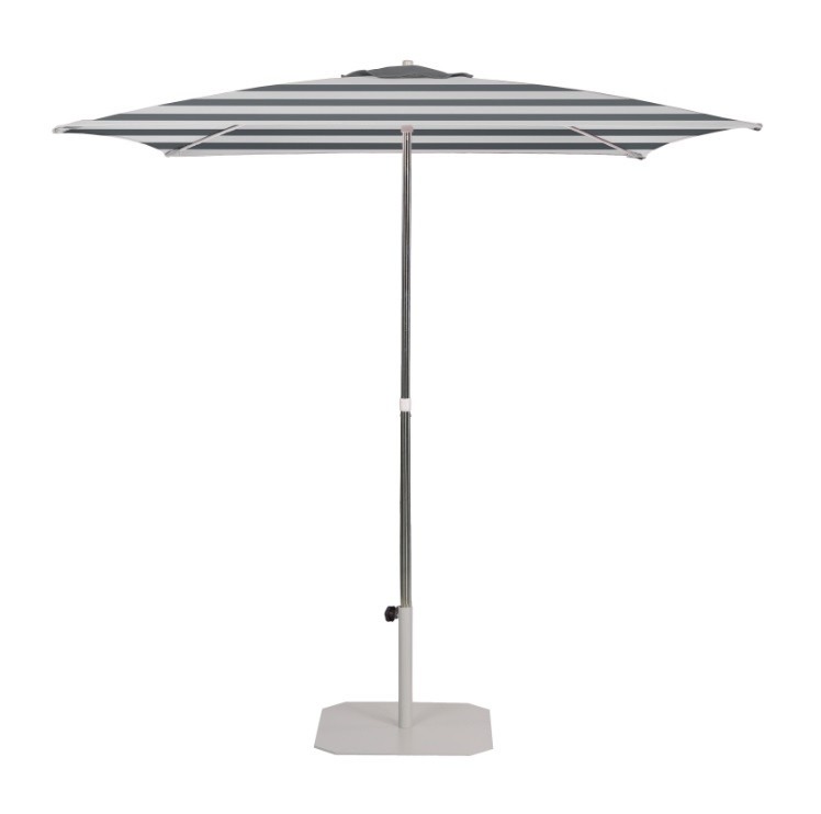 Parasol Eolo de Ezpeleta con estructura de aluminio lacado y tejido OLEFIN a rayas.