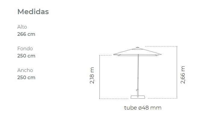 Parasol de 250 cm de diámetro con 4 varillas de 20 x 14 mm.