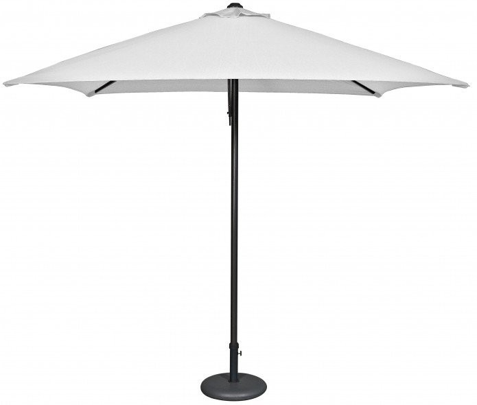 Parasol Eolo de Ezpeleta con estructura de aluminio lacado color antracita y tejido OLEFIN color blanco.