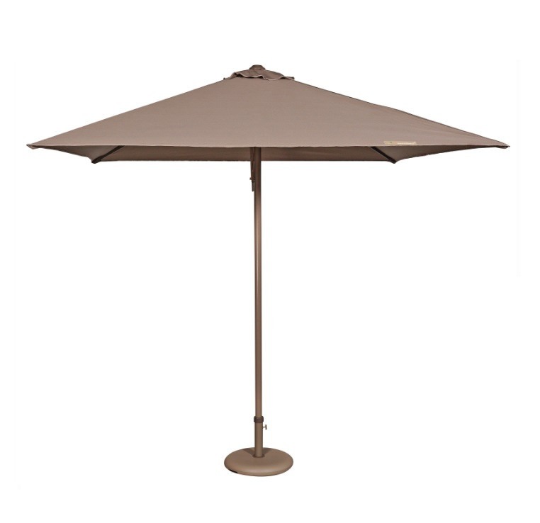 Parasol Eolo de Ezpeleta con estructura de aluminio lacado color taupe y tejido OLEFIN color taupe.